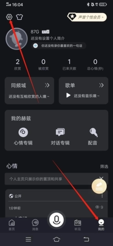 1、进入后,先点击右下角的“我的”,接着点击左上角的“齿轮”图标。