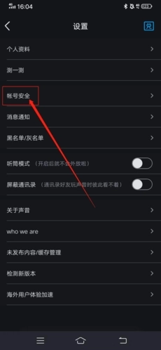 2、在设置页面中进入“账号安全”;