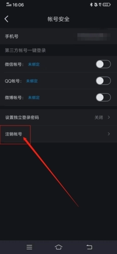 3、在这里我们就能找到“注销账号”的选项,点击该选项即可。