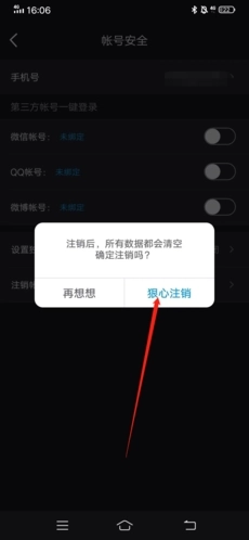 5、最后输入验证码,再次点击左侧的“狠心注销”选项,这样就能成功完成该账号的注销操作了。