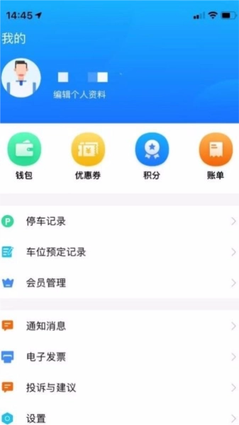 5、用户进入我的页面后,可选择查看优惠券、账单、通知消息、投诉与建议等功能。