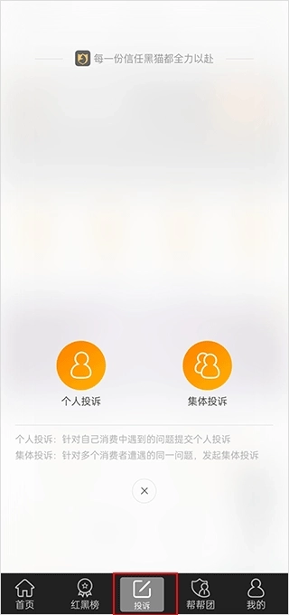 1、首先打开黑猫投诉;