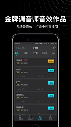 支持混音开关,一键实现话筒静音,新增电音、专业、流行、歌手、闪避等功能,为您带来超凡的直播体验。