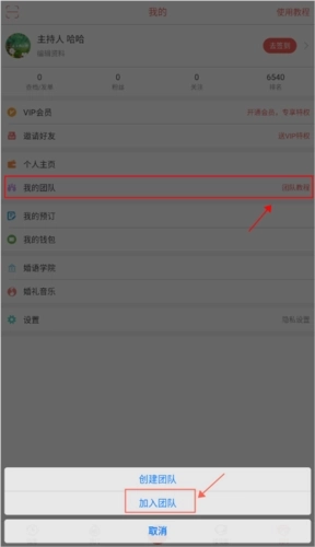 1、进入我的页面后,点击“我的团队”选项,接着选择“加入团队”