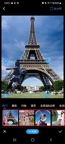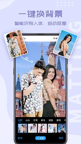 借助人工智能技术自动识别图片里的人像并完成自动抠图,您能够添加多张人像图片,也可以直接进行复制,自由调整人像的位置和大小,充分发挥自己的想象力,名人合影、隔空合照这类操作会变得非常简单。