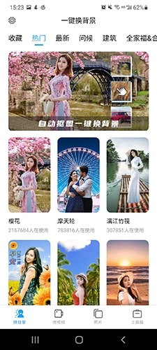 1.打开相册大师后,首先进入的是换背景功能页面,接着挑选你心仪的背景并点击进入即可。