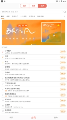 5、另外,这款软件和其他软件存在一些差异,在应用内部还提供了大量当下热门的铃声,可供用户挑选使用。