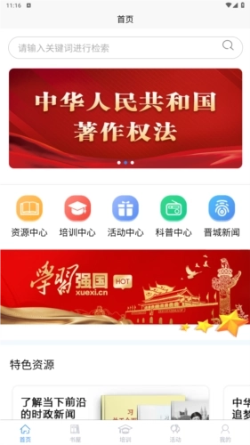 1、首页页面:整合了资源中心、培训中心、活动中心、科普中心、晋城新闻等板块,只需点击相应入口即可直接进入对应栏目。