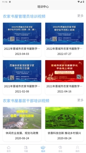 3、培训页面:涵盖管理员培训视频、基层干部培训视频、青少年培训视频、女性培训视频等内容。