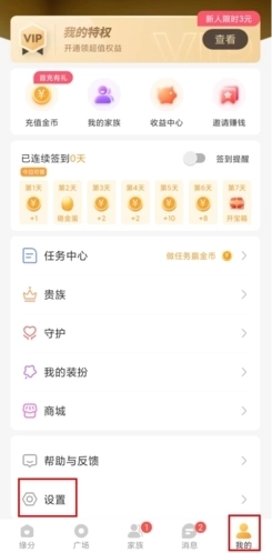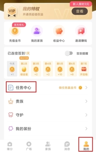 1、在我的页面中点击任务中心按钮。
