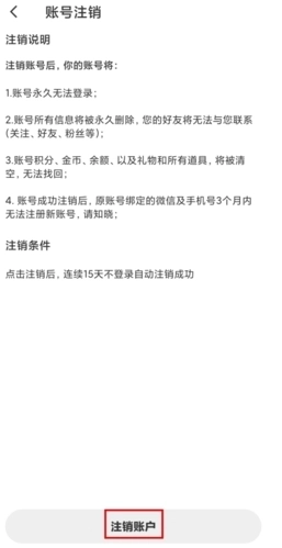 3、进入账号注销页面后,点击注销账户按钮即可完成注销操作。