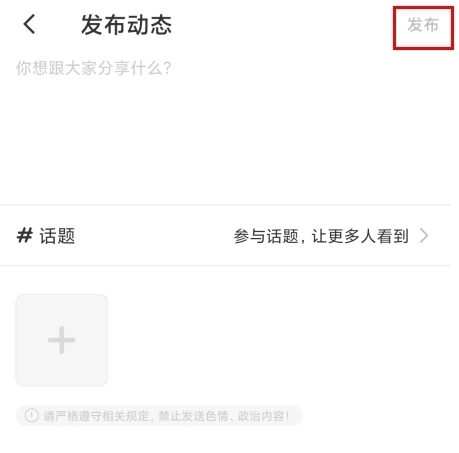 2、在发布动态的页面里填写好相关内容后,点击页面右上角的发布按钮即可完成操作。