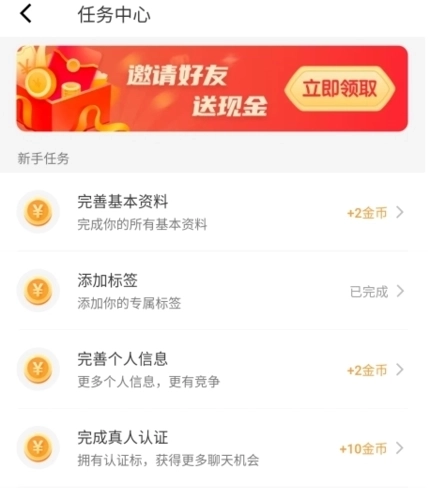 2、在任务中心页面,只需完成新手任务与每日任务,借助获取金币的方式来赚取收益。