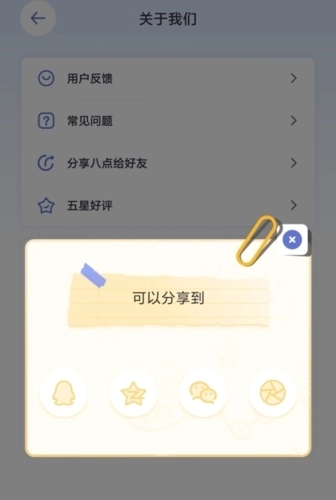 2、在关于我们页面中点击分享八点给好友按钮;