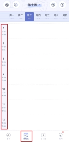 1、在课程表页面中点击左侧的时间;