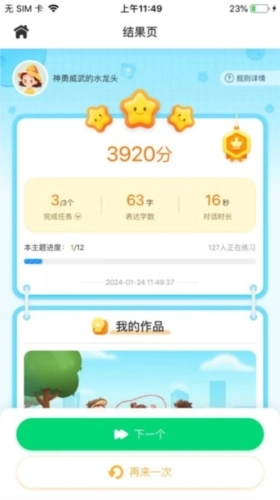 对话过程中,即时奖励加分、星星和徽章,让孩子在玩乐中完成看图写话。