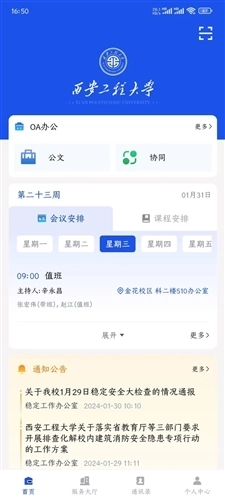 西安工程大学的智慧校园App支持一键登录,是一个聚焦教育数字化的校园服务平台。师生们借助它能轻松实现“一网通办”,大幅节省时间与精力;还能在线浏览最新校园通知公告,随时查询各类所需信息,让校园生活更便捷,业务办理也高效顺畅。这款软件整合了校园资讯、OA办公、信息查询、一卡通等多元功能,将公文流转、业务办理与学习生活应用融为一体,全方位服务于西安工程大学的师生群体。