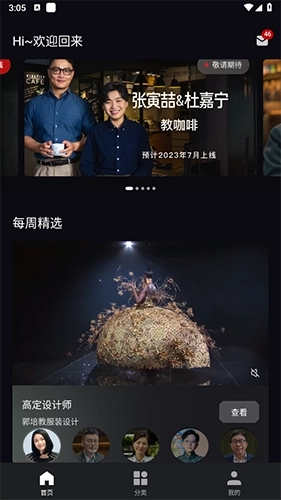 1、进入大渔大师课,各个行业大师担任导师为你授课,为你提供每周精选课程;