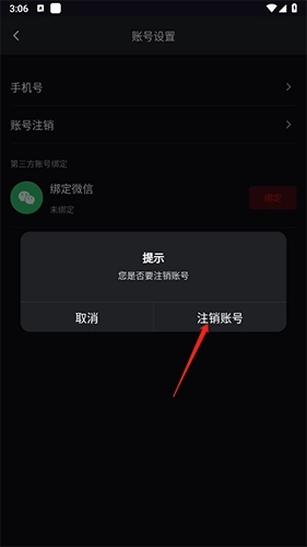 3、点击“账号注销”选项,在弹出来的窗口中点击“注销账号”选项即可。