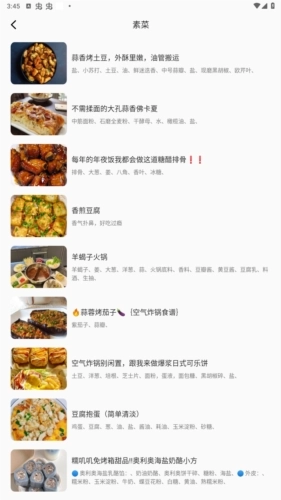 这款软件里的每一道菜品都配备了对应的制作方法和教学视频,不仅会详细说明所需食材的种类与分量,还提供了清晰的烹饪步骤、高清的图片和视频内容。你可以直接跟着视频学习,同时也能参考详细的文字说明。它特别适合热爱美食的用户使用,即使是烹饪新手也能在这里轻松入门,通过不断实践制作,还能逐步提升自己的厨艺水平。