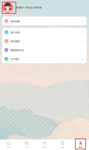 1、在个人页面左上角点击头像,通过点击该头像完成登录操作;
