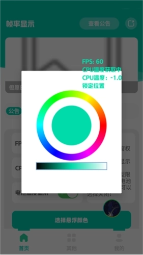 4,调节悬浮框颜色以便清晰显示;部分机型限制CPU温度和电池温度显示错误可选择关闭。