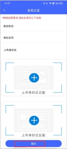3、填写自己的真实信息,上传个人的身份证和照片,点击提交。