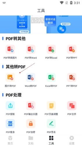 万能扫描王可以将照片转化成为pdf的模式,这种转换方式可以帮助用户更好的完成格式的转换,而用户若是无法在众多的功能中找到对应的功能可以试一下下方的步骤。