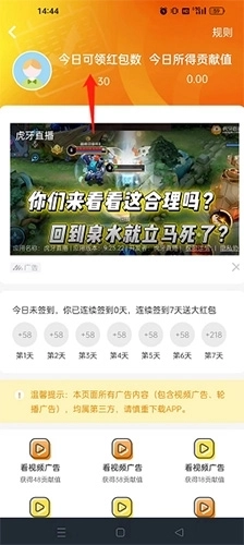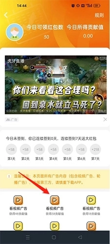 2、点击“看视频广告”选项,即可快速获得贡献值。