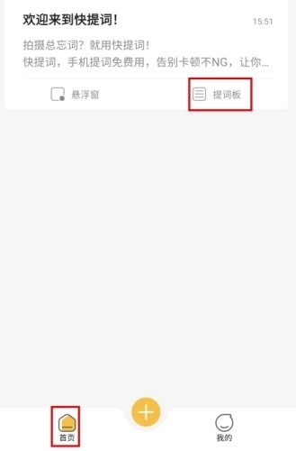 1、在首页页面中点击提词板按钮;