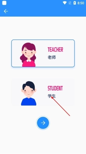 2.点击其中身份的选择,你可以注册成为教师或是学生,而这里我们就以学生的身份进行演示。