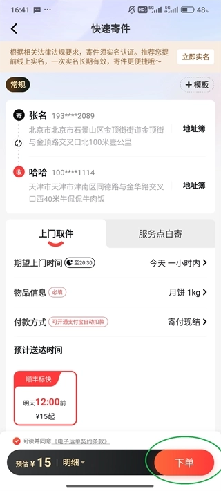 5、最后就可以点击屏幕下方的“下单”邮寄了。
