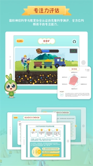 可以帮助用户提高孩子的专注力。有研究表明,孩子成绩提高1%,专注力就能提高5%。孩子的专注力可以通过专注力训练来提高。