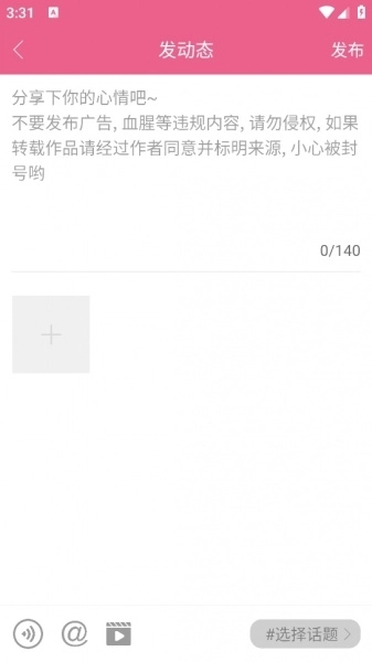 3、最后填写动态内容信息,点击上方的发布选项就可以了。