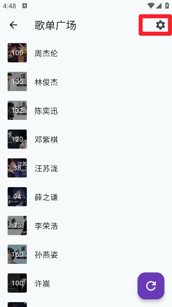 2、在歌单广场点击右上角设置图标。