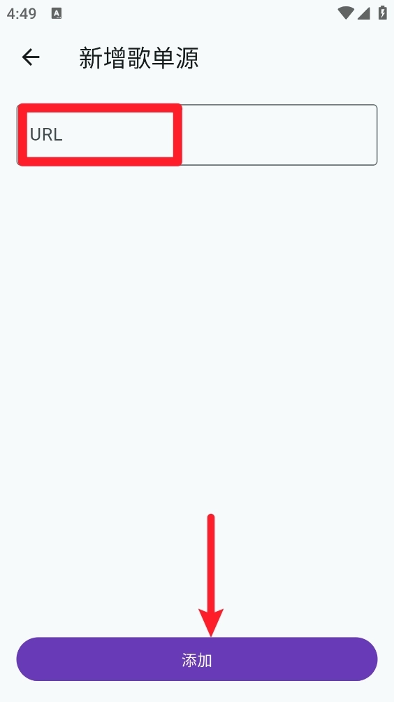 4、最后输入歌单地址,点击底部进行添加即可。