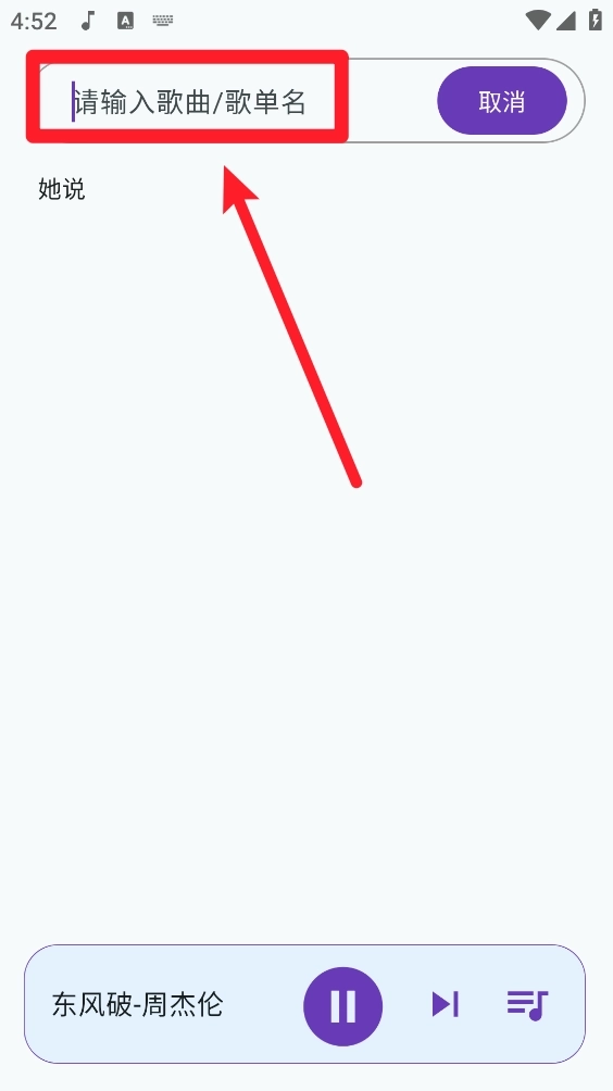 2、进入后输入歌曲或歌单名称进行搜索。