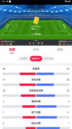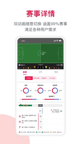 2、赛事直播功能,能让用户实时了解某场足球赛事的比赛进程与最终结果。