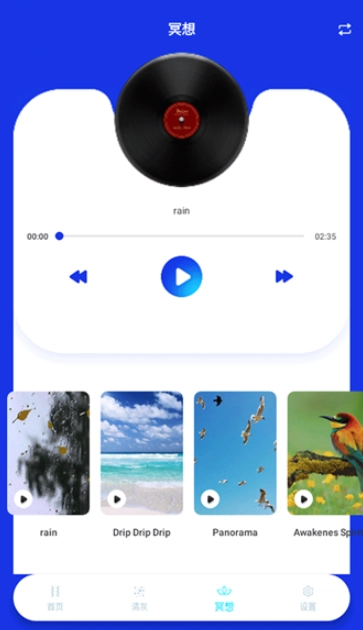 3.冥想页面能为你模拟各类大自然的声音,助力你实现身心合一的状态