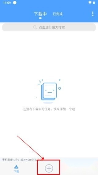 1、打开星速磁力bt App,下方的【+号】