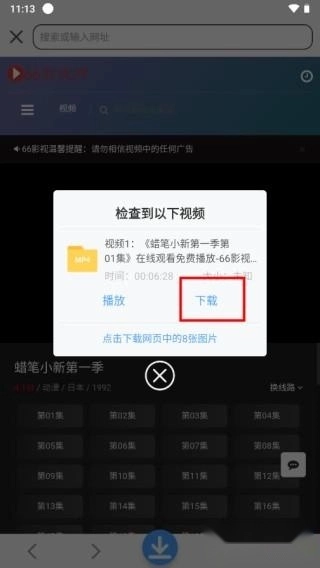 4、就可以自动识别连接中的视频,点击即可