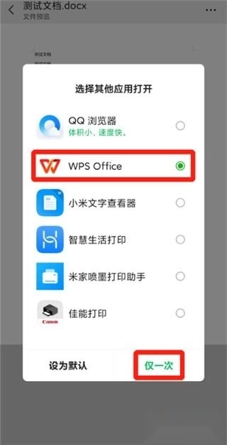 1、例如,若PDF文件存于微信中,可先打开微信,找到需打印的PDF文件并打开,点击右上角的三个点图标,选择“其他应用打开”选项,再选择WPS Office,最后点击“仅一次”即可。