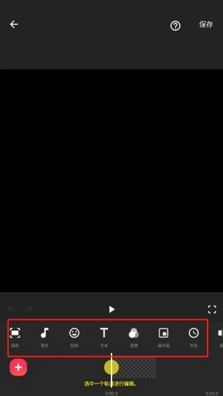 点击视频后导入一个视频,接着进入视频编辑页面,此时就能对视频进行剪切、调速,还可以添加背景、滤镜、音乐、文字、贴纸等内容。