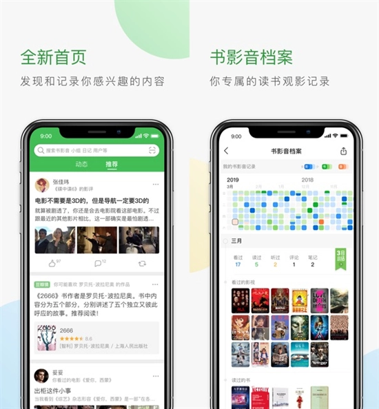 1、全新改版的首页,让你写文字、发图片、给书影音作品评分评论都更便捷,能随时随地记录生活点滴与内心想法。首页的“动态”板块会第一时间推送你最关注的内容,当你关注其他豆友后,就能在“动态”里及时看到他们分享的生活日常和各类思考啦。