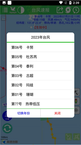 会弹出一个选择框,你可以在这里查询以往的台风记录。