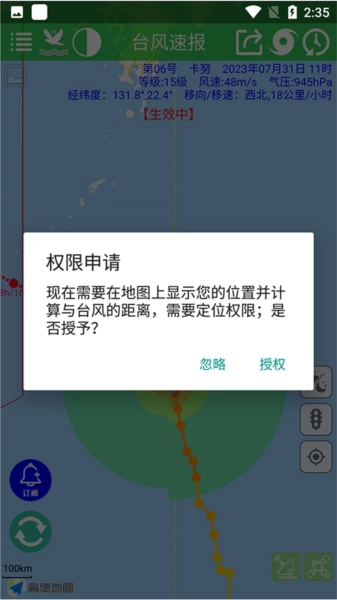 当我们想要查看台风风力时,可以点击授予软件相应权限。