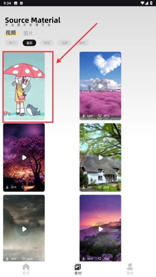 在趣味视频列表里,点击你想要的视频素材,把它选定下来,这样就能用于后续的处理操作了。