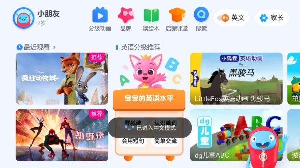 独家推出迪士尼首款双语互动动画产品迪士尼学习。