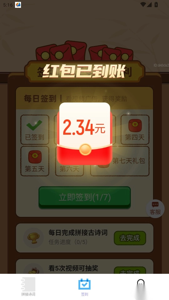 最后就可以完成签到获取到今日签到专属的红包奖励