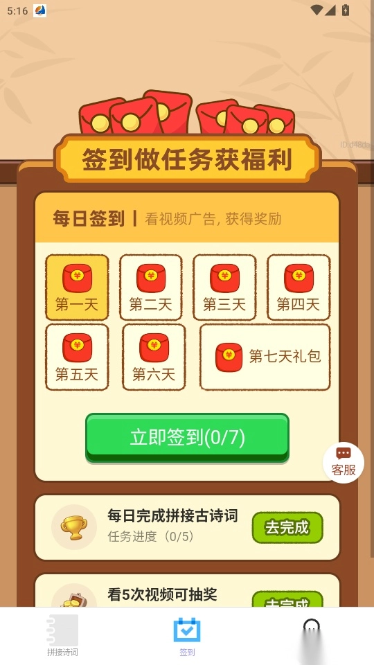 这是一款集休闲与益智于一体的软件,用户既能通过拼接诗词的形式参与答题学习,又能借助诗词答题轻松获取收益、赢取更多红包奖励。平台提供丰富多样的赚钱任务,助力用户积累更多收益,同时支持便捷的提现管理功能,让大家尽享答题赚钱的趣味体验。